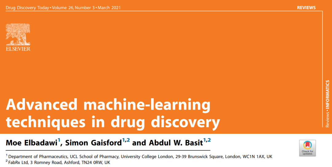 Moe Elbadawi, Simon Gaisford, and Abdul W. Basit, Advanced Machine-learning techniques in drug discovery, 2021, 26, 3, 769-777. DOI: 10.1016/j.drudis.2020.12.003.